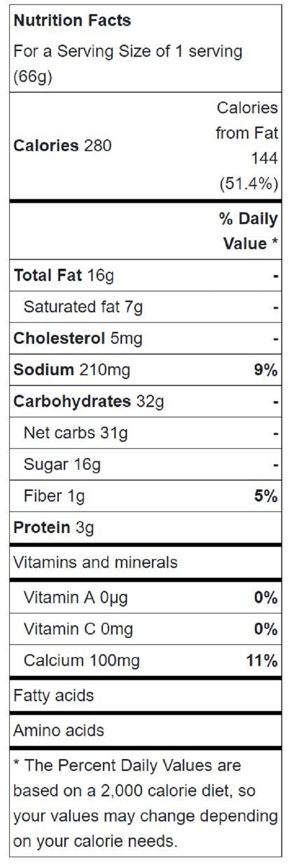 Hostess honey bun nutrition facts. Calories in Hostess Glazed Honey Buns and Nutrition Facts 24g. Carbs. 53g. Protein. 4g. There are 440 calories in 1 bun (106 g) of Hostess Glazed Honey Buns. Calorie breakdown: 49% fat, 48% carbs, 4% protein. Devil's Food - Hostess Serving size 1 Bun: Calories Amount per serving: 580 % Daily Value* Total Fat 30g: 38%: Saturated Fat 16g: 80%: Trans Fat 0: ... We urge you to review the nutrition facts panel, ingredient statement, and allergen declaration on each product at the time of purchase for the most current nutritional, ingredient, and allergen information ... Hostess Honey Bun Coffee Single Serve Cups | 12 Ct. | Coffee Hostess Honey Bun Coffee Single Serve Cups found at Hannaford Supermarket. Add to online shopping list or grocery cart for Hannaford To Go. ... *The % Daily Value (DV) tells you how much a nutrient in a serving of food contributes to a daily diet. 2,000 calories a day is used for general nutrition advice. Source: TRILLIANT FOOD & NUTRITION, LLC ... Calories in Hostess Frosted Honey Bun - Nutritional Information and ... Nutrition Facts Serving Size 96 grams Amount Per Serving Calories 410 Calories from Fat 220 % Daily Value * Total Fat 24g 37% Saturated Fat 11g 55% Trans Fat 0g Cholesterol 20mg 7% Sodium 270mg 11% Potassium 0mg 0% Total Carbohydrate 42g 14% Dietary Fiber 1g 4% Sugars 31g Protein 5g 10% * Percent Daily Values are based on a 2,000 calorie diet.