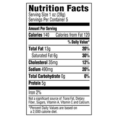 HORMEL ® Pepperoni, Beef, 14 slices per oz, 2/12.5 lb Simply open package and portion as needed. Nutritional Facts Serving Size (100g) Amount Per Serving Calories 487 % Daily Value Total Fat 44.03g 56% Saturated Fat 18.75g 94% Trans Fat 2.5g Cholesterol 112mg 37% Sodium 1581mg 69% Total Carbohydrate 1 g 0% Dietary Fiber 0 g 0% Total Sugars 0 g Includes 0g Added Sugars 0% Protein 19g Vitamin D 0mcg 0% Hormel Original Sliced Pepperoni - Shop Meat at H-E-B Shop Hormel Original Sliced Pepperoni - compare prices, see product info & reviews, add to shopping list, or find in store. ... Calories: 150: Calories from Fat: 0 % Daily Value* Total Fat 14g: ... You should not rely solely on the information presented here. Always read labels, warnings and directions before using or consuming a product. Products for Nutrition and Well-Being - Hormel Foods Our Hormel® mini corn dog, a turkey frank surrounded by a whole grain batter, is one of several Hormel® products marked with the USDA Child Nutrition label, which lets foodservice operators know the product contributes nutrients toward national meal pattern requirements. Calories in Hormel Pepperoni, Cup N' Crisp - Menu With Nutrition Calories in Hormel Pepperoni, Cup N' Crisp. Hormel Nutrition Facts and Calories. Nutrition Facts. Amount Per Serving: 150 Cal %DV* Total Fat: 14 g: 21.5 % Saturated Fat: 6 g: 30 % Trans Fat: 0.5 g % Cholesterol: ... Black Label Maple Bacon. 2 pan-fried slices (24 g) 110 Cal. Black Label Bacon, Applewood Smoked. 2 pan-fried slices (24 g) 110 Cal ...