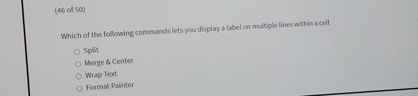42 which of the following commands displays a label on multiple lines within a cell?