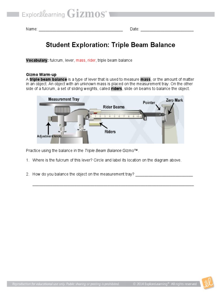 Triple Beam Balance | Purpose, Parts & Use - Study.com 11 Jan 2022 — Triple Beam Balance Diagram The parts have arrows to indicate the location of the part. This image shows you the various parts of the triple ... Triple Beam Balance: Function, Parts, and Uses - Science Struck As the name of this apparatus implies, the triple beam balance comprises three beams which are individually used to determine the mass of an object. Each of ...