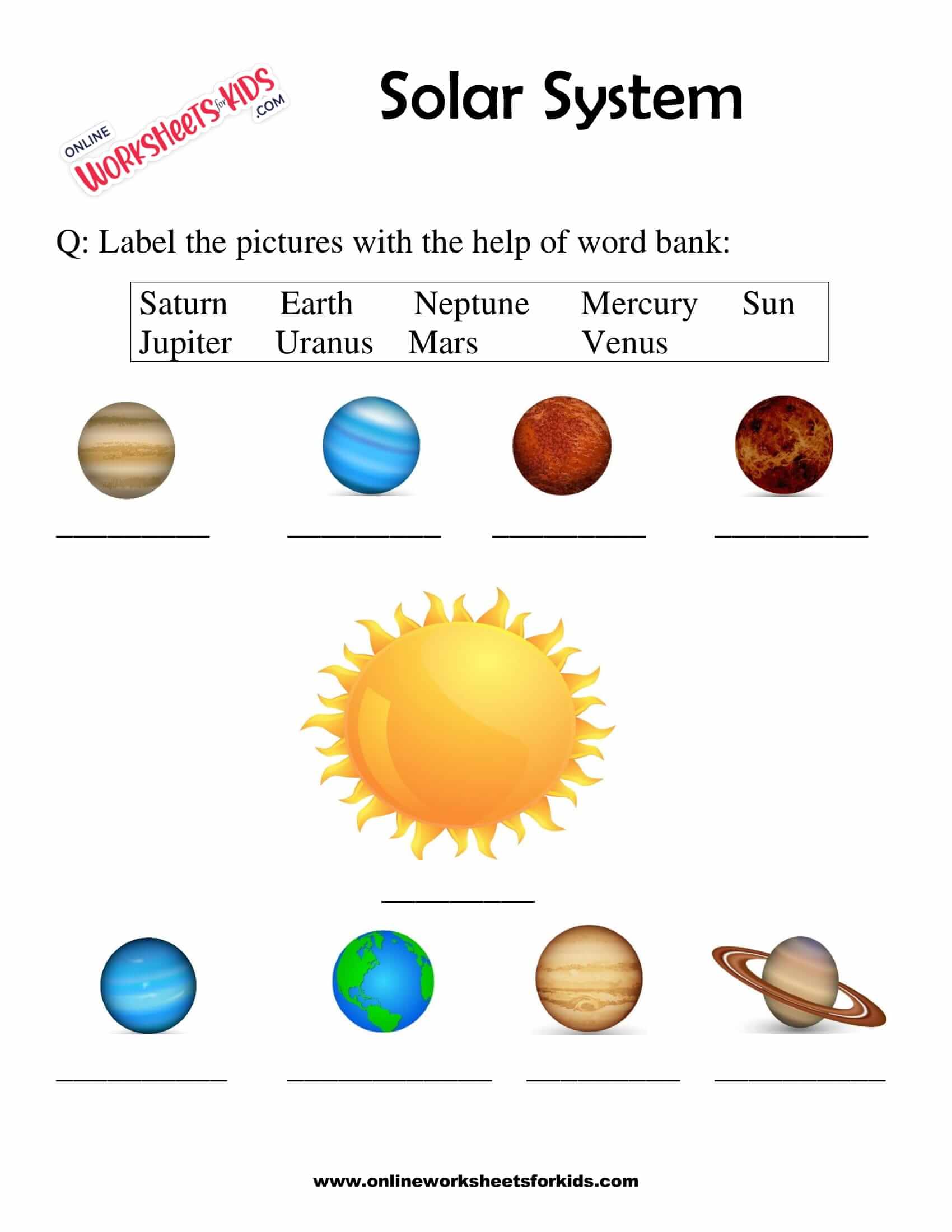 Label the solar system worksheet