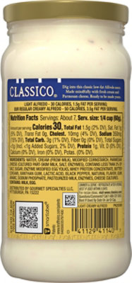 Generic - Ragu Classic Alfredo Sauce - MyFitnessPal Nutritional Info ; Carbs14 g ; Dietary Fiber0 g ; Sugar-- g ; Fat28 g ; Saturated17 g.
