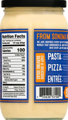 Ragu Alfredo Sauce Nutrition Label - SauceProClub.com 1 Figure out how much Alfredo sauce to use. Youll need the same number of sauce servings as pasta servings. For example, if you made enough pasta for two people, heat enough sauce for two people. Check the nutrition label on the sauce jar to find out how much sauce is in one serving it should be about 1/4 to 1/2 cup per person.
