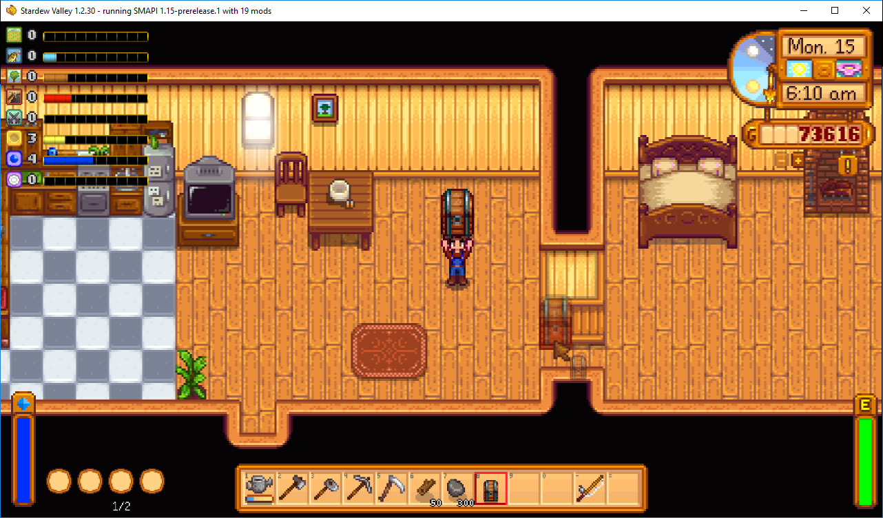 gamerant.com › stardew-valley-best-mods-changeStardew Valley: 10 Best Mods That Change Everything - Game Rant Feb 24, 2021 · A chest with the Automate mod installed pulls and pushes items out of adjacent machines (crystalariums, casks, furnaces, etc) and makes the production of artisan goods a far less complicated task. Carry Chest at Stardew Valley Nexus - Mods and community Carry Chest lets you pick up chests even if they're not empty. Install Install the latest version of SMAPI. Unzip the mod folder into Stardew Valley/Mods. Run the game using SMAPI. Use Just pick up a chest like normal, even if it's not empty! (To pick up a chest, interact with it when your toolbar has an empty slot selected.) › stardew-valley-modsBest Stardew Valley Mods | PC Gamer Apr 04, 2022 · Free Love is the Stardew 1.5 successor to the former Multiple Spouses mod which now allows you to have many living situations like a roommate and a spouse or multiple spouses. Platonic Partners How to Move Chests in Stardew Valley - VGKami Key Takeaway. You can move an empty chest in Stardew Valley by walking next to it and hitting it with your pickaxe, axe, or hoe. You can move a chest with items in it by walking next to it and hitting it 10 times while your hands are empty. Chests play an important role in storing your items in Stardew Valley.