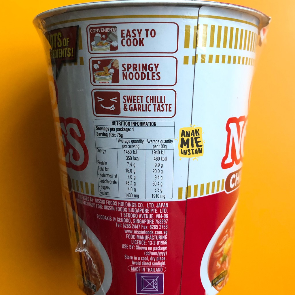 Nissin - The Packaging People The packaging for these Cup Noodles included: 1x cardboard wrap around label. 1x thin plastic wrap sheet. 1x plastic cup. 1x plastic coated paper lid. Half of this packaging can be recycled but it was still a lot for a single serving of chicken noodles. Plus, most people when they are done just chuck the whole lot into the bin. Nissin Cup Noodles Multiple Variety Packs, Original, Seafood, Curry ... Nissin Cup Noodles Stir Fry Variety 4 Pack: Teriyaki Beef, Teriyaki Chicken, Hot Garlic Chicken, Sweet Chili 247 11 offers from $10.31 Nongshim Shin Original Ramyun Cup, 2.64 Ounce (Pack of 6) 19,094 Amazon's Choice in Packaged Noodle Soups 12 offers from $7.38 Nissin Cup Noodles Stir Fry Noodles in Sauce, Teriyaki Chicken, 2.89 Ounce (Pack of 6) obsolete item - formerly called Soup, NISSIN, CUP NOODLES, Ramen Noodle ... Nutrition facts label for obsolete item - formerly called Soup, NISSIN, CUP NOODLES, Ramen Noodle, chicken flavor, dry mix. ... NISSIN, CUP NOODLES, Ramen Noodle, chicken flavor, dry mix. Source: Nutrient data for this listing was provided by Obsolete. Each "~" indicates a missing or incomplete value. Easy-to-Understand Typography | NISSIN FOODS GROUP Innovation in Label Position NISSIN YAKISOBA U.F.O. Perori uses a tall cup with the cooking directions printed on the side of the cup. Some customers have voiced that this makes it hard to see the cooking directions while preparing. Therefore, the position of the cooking directions has been changed to the lid.