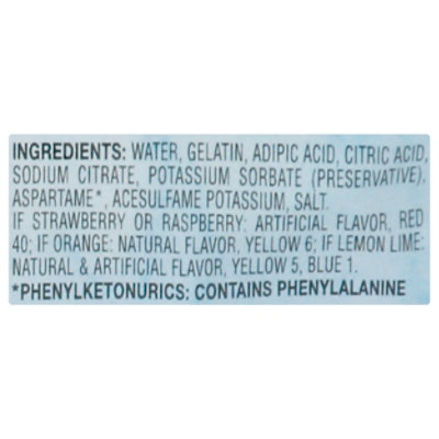 Winky Sugar Free Gel Snacks 24 Pack 3.25oz - Lakeview Farms A flavorful assortment of strawberry, lemon lime, black cherry and orange sugar free gelatin in conveniently portioned cups. Ingredients WATER, GELATIN, ADIPIC ACID, CITRIC ACID, POTASSIUM SORBATE (PRESERVATIVE), SODIUM CITRATE, ASPARTAME*, NATURAL & ARTIFICIAL FLAVOR, ACESULFAME POTASSIUM, SALT, RED 40, YELLOW 6, YELLOW 5, BLUE 1.