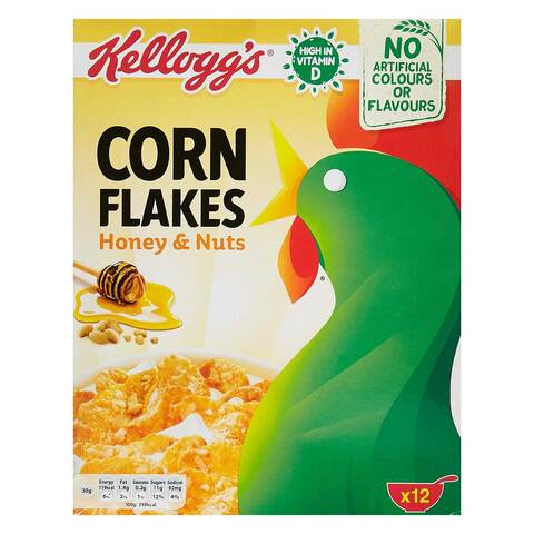 Corn Flakes facts and health benefits Packed With Nutrition. Corn flakes are not only tasty; but an excellent source of vitamins, folate, minerals, dietary fiber, proteins, ... Nutritional value of Kellogg's Honey Crunch Corn. Serving Size: 1 Cup, 40 g. Calories 154 Kcal. Calories from Fat 6.84 Kcal. Proximity Amount % DV; Water: 1.2 g: N/D: Energy: 154 Kcal: N/D: Energy: 644 kJ: N ... Kellogg's Corn Flakes® cereal - SmartLabel™ 80 Calories 0 g Sat Fat 150 mg Sodium 2 g Sugar Nutrition Facts Servings Per Container 1 Serving Size 1 Container (21 g) *The % Daily Value (DV) tells you how much a nutrient in a serving of food contributes to a daily diet. 2,000 calories a day is used for general nutrition advice. Kellogg NLI# 15911b Corn Flakes facts and health benefits Corn flakes are typically flakes that are orange-yellow in color, have a crunchy texture, and soften with milk which is usually served in a bowl with the cereal. Corn flakes were first produced by Kellogg’s, but now there are numerous brands of corn flakes, including Sanitarium, generic brands, and gluten free brands. Kellogg's® Corn Flakes Real Almonds & Honey - Healthy Cereal Kellogg's® Corn Flakes Original. Kellogg's Corn Flakes and Milk is a nourishing breakfast for your busy mornings. It is low in fat, naturally cholesterol free and also has the goodness of Power of 5- Energy, Protein, Iron, Calcium and Vitamins. All you need to do is just add milk and jump start your active day. Learn more