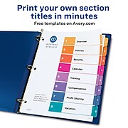 Avery® Big Tab Printable Label Dividers, Easy Peel Labels, 5 Tabs Avery Avery® Big Tab Printable Label Dividers, Easy Peel Labels, 5 Tabs PK Pre-printed Index Dividers Customize arched tabs with free online templates ... 14432 Manufacturer Website Address ... Personalize your tab labels using free online templates on Avery Design and Print. Then print your labels in black and white ...
