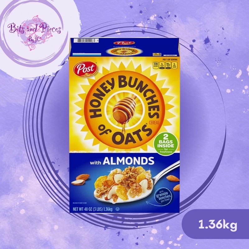 Honey Bunches of Oats with Almonds, 14.5-Ounce Boxes (Pack of 4) Honey Bunches of Oats brings together 4 nutritious grains into crispy flakes and crunchy granola bunches for more taste, more texture, and more healthy satisfaction. Honey Bunches of Oats - Almond contains 10g of whole grain per serving and 9 essential vitamins and minerals. Wake up your mouth and try some today!