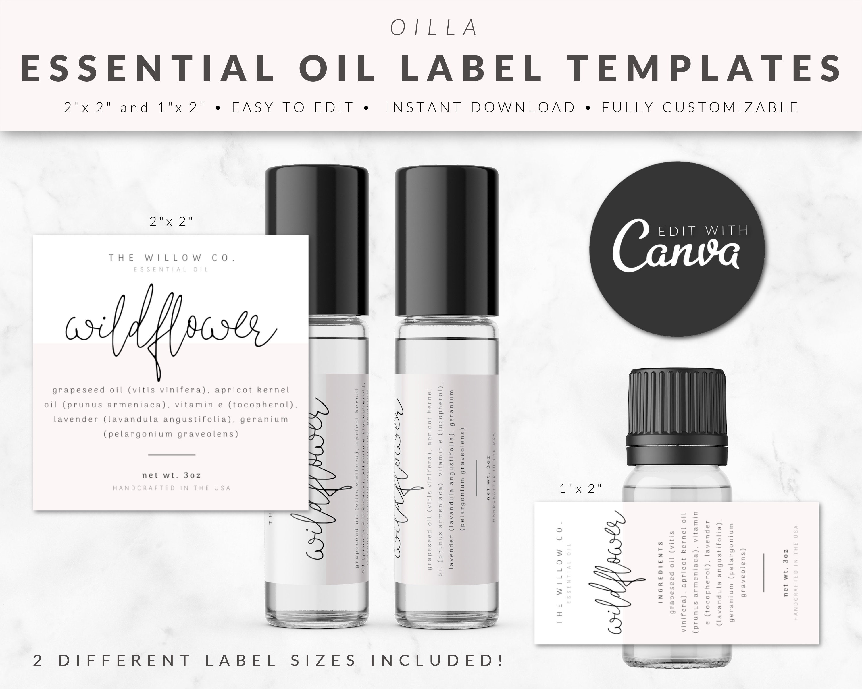 Essentail Oil Labels - Roller bottle DIY Label - Custom Oil Label Template - Editable Product Label 10ml - Product Label Design 2''x2''