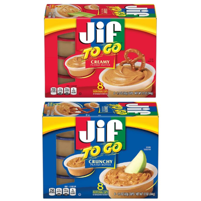 Jif Peanut Butter (1.5 oz) Delivery or Pickup Near Me - Instacart Details. Spread the love everywhere you go with our convenient and portable Jif To Go Natural Creamy Peanut Butter Spread Cups. Each cup is made with just five ingredients and 90% peanuts for a naturally delicious taste the whole family enjoys. Perfect for school lunches or midday pick-me-ups, the cups don't require refrigeration or stirring so ...