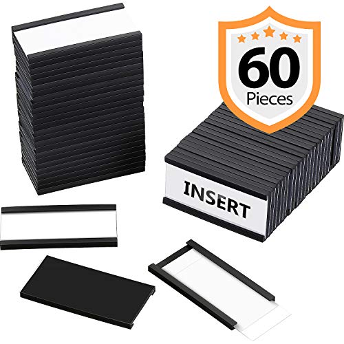 CertBuy 60 Pack Magnetic Data Card Holder 1×3 Inch, C-Channel Magnetic Label Holder, Magnetic Card Holders with 120 White Paper Insert and 60 Clear ...