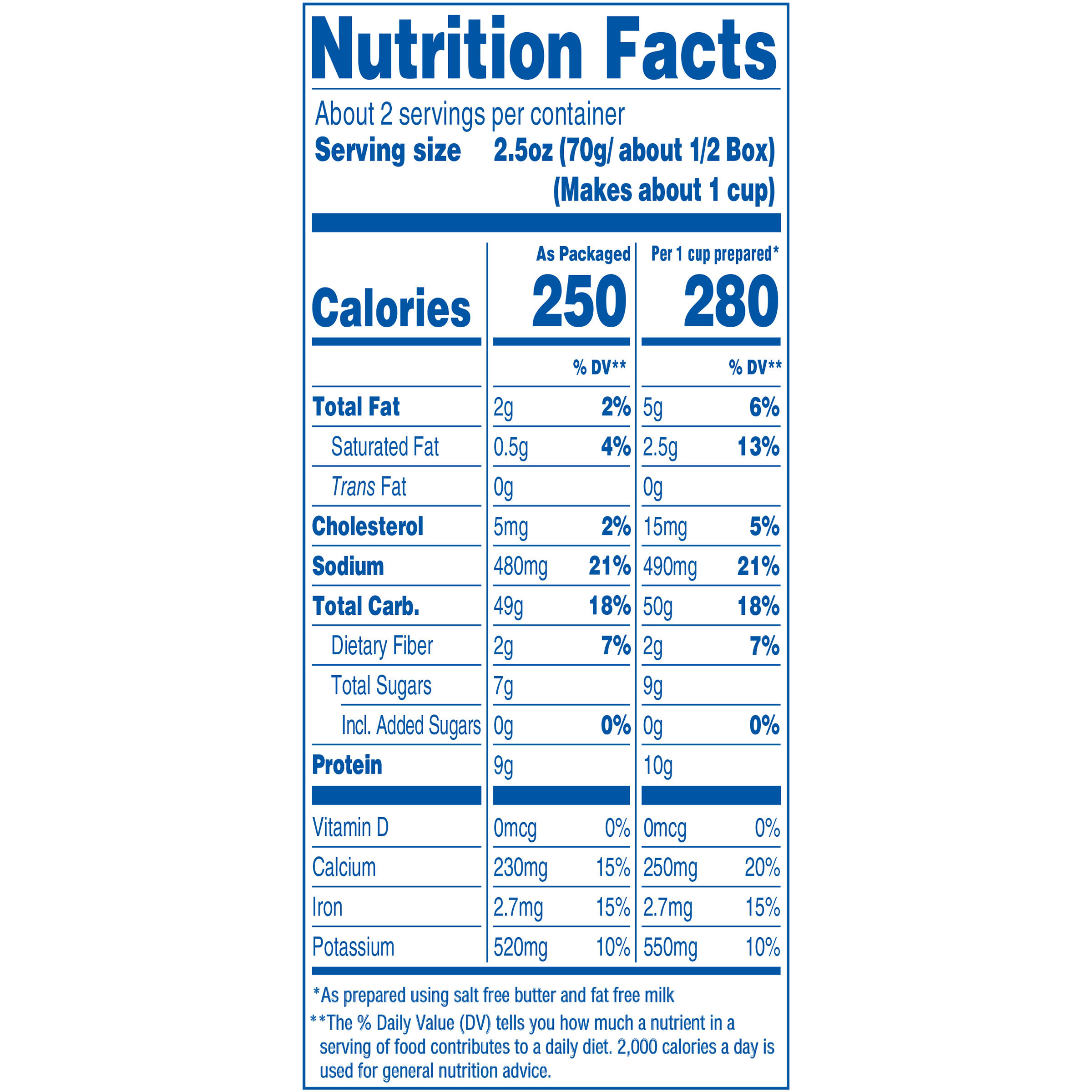 Kraft mac and cheese nutrition: Calories, carbs, and recipe Kraft Mac and Cheese nutrition facts · Calories: 257 kcal · Fat: 7.8 grams · Sodium: 518 mg · Carbohydrates: 37.9 grams · Fiber: 2.3 grams · Sugars: ... KRAFT Macaroni and Cheese Dinner Original Flavor ... - URMC Nutrition Facts. KRAFT Macaroni and Cheese Dinner Original Flavor, unprepared, 1 NLEA Serving (makes about 1 cup prepared) ... Nutrition Facts for Kraft Original Macaroni & Cheese • MyFoodDiary® Nutrition Facts ; Fat 29.2% ; Carbs 59.0% ; Protein 11.8% ...